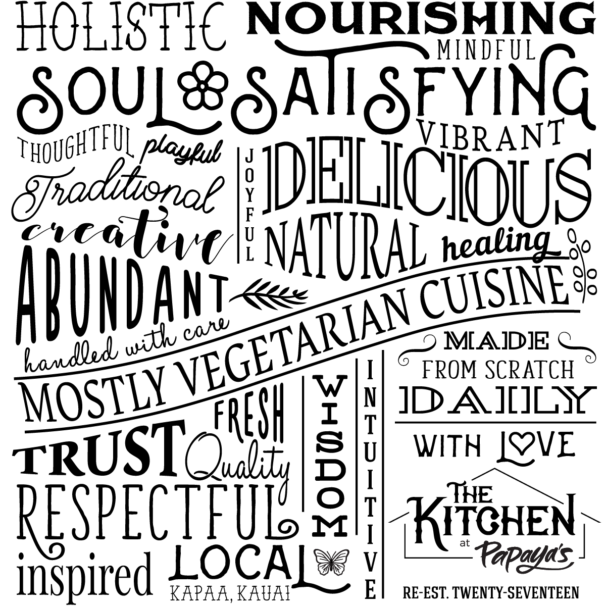 The Kitchen at Papaya's Typography Collage
